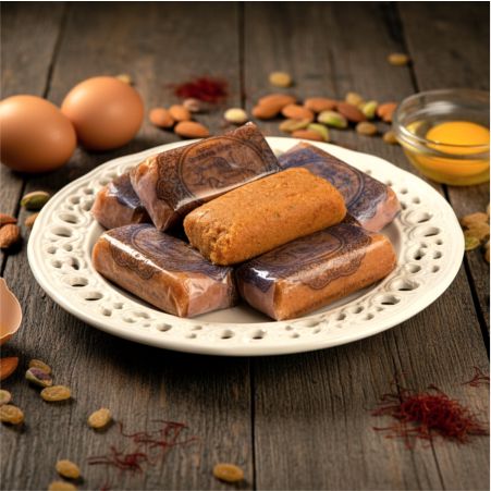 Made of mawa, sugar, eggs, ghee and Saffron.